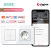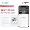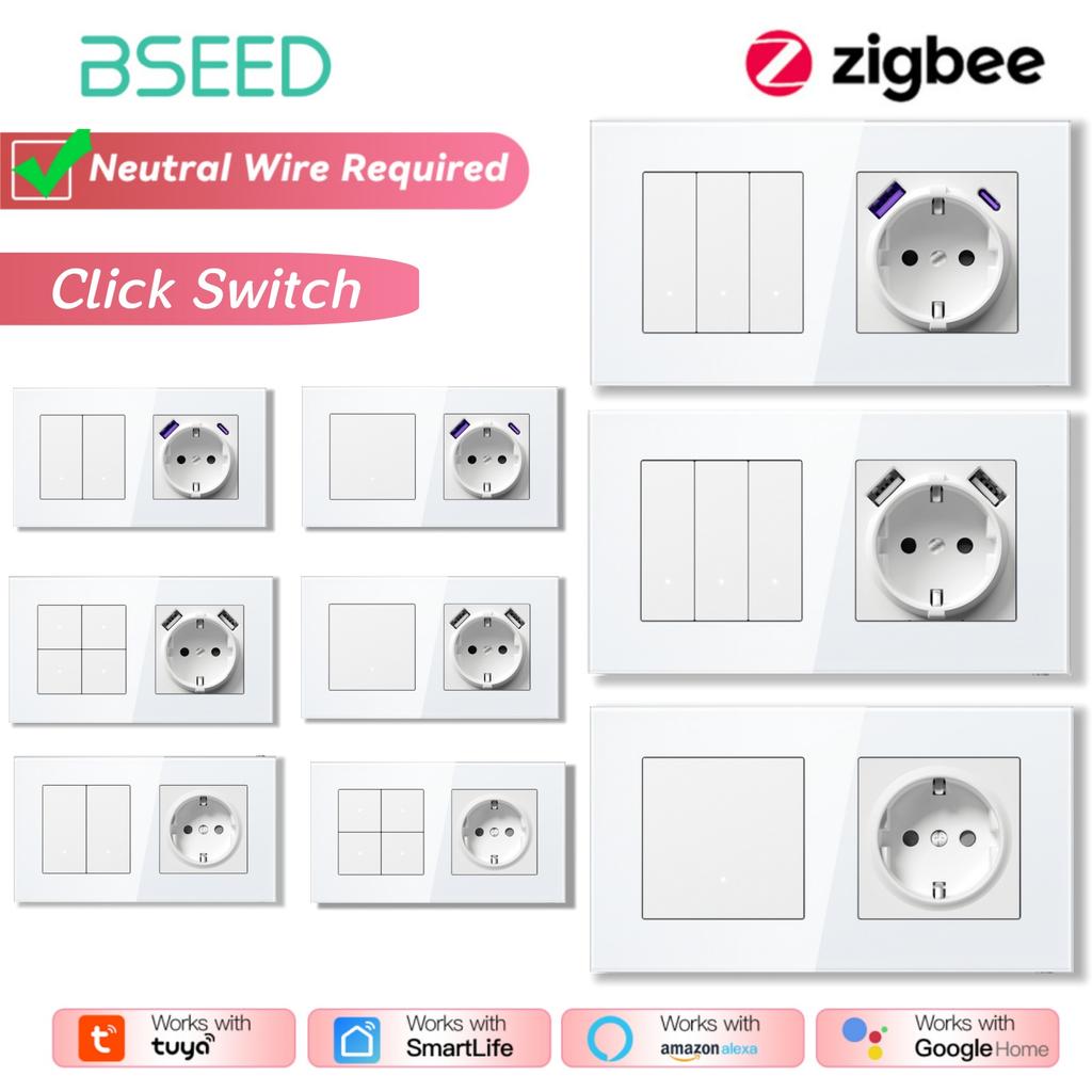 BSEED ZigBee Switches Wall Smart Click Light Switches Yellow Backlight Glass Frame Tuya APP Switch EU Wall Sockets with USB