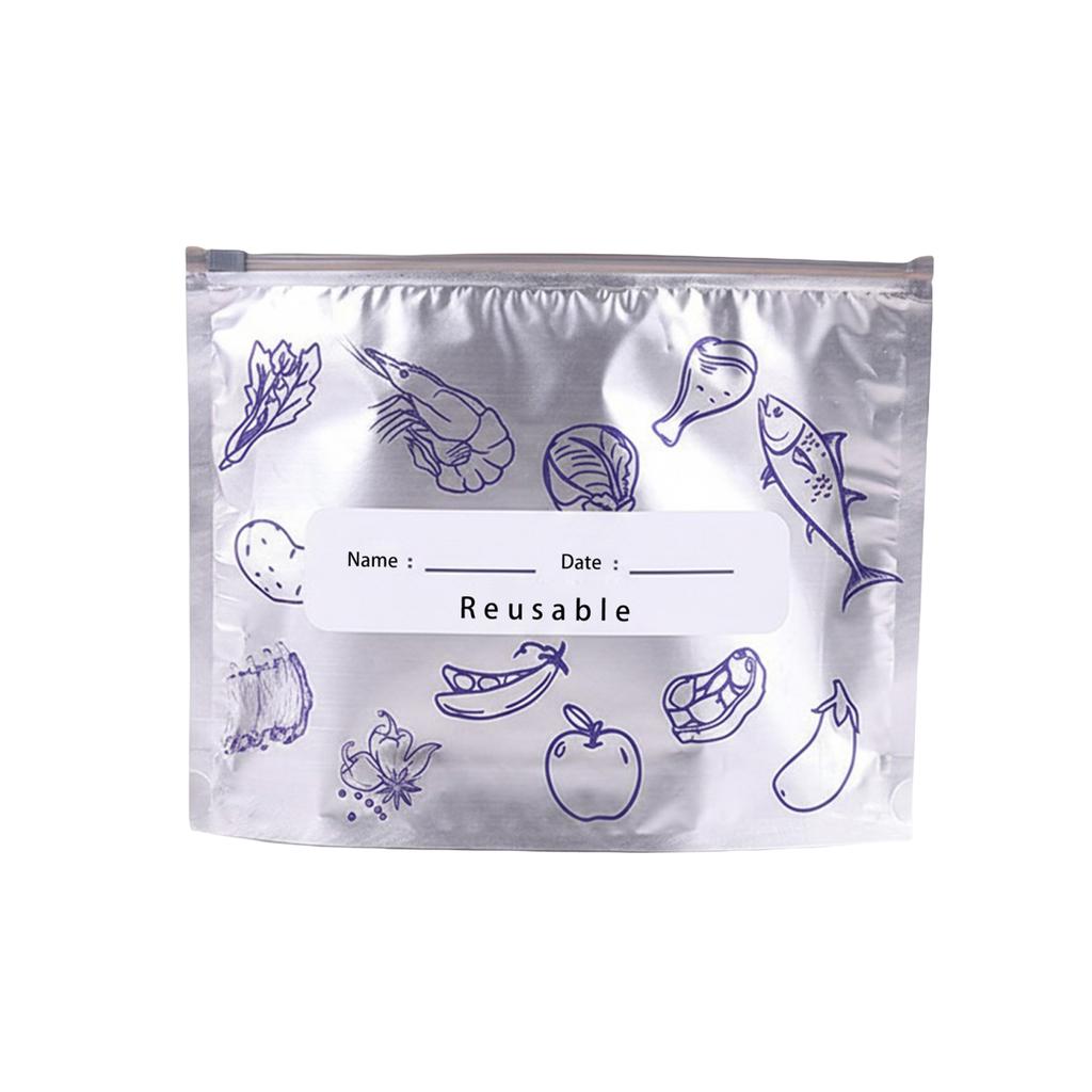 Reusable Aluminum Foil Vacuum Zipper Pouches with Label Freezer Safe & Leak Proof Stand Up Storage Bags for Vegetable Fruit Meat
