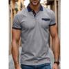 Summer Vintage Polo-neck Casual Fashion Short Sleeve T-shirt Male Patchwork Denim Tee Pullover Top Men