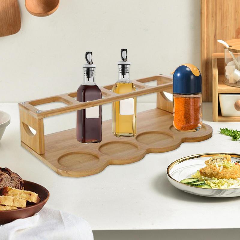Oil Bottle Rack 2 Tier Olive Oil Rack Organizer for Cabinet Wooden Kitchen Bottle Organizer Oil Vinegar Bottle Storage Display