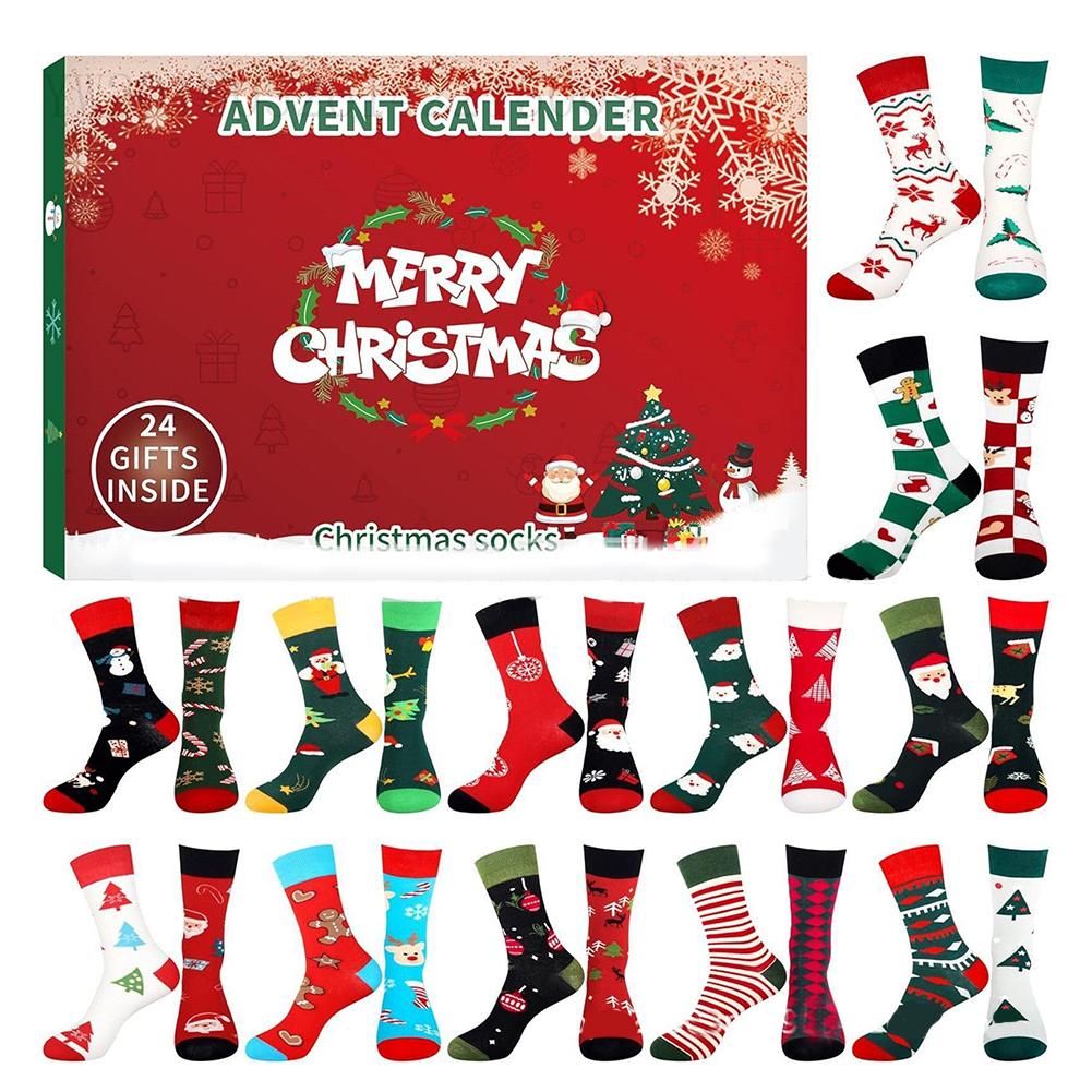 24 Days Christmas Stocking Advent Calendar with 12 Pairs of Socks for Festive Season and Comfortable Winter Wear — tüm dünyaya ücretsiz teslimat ile online ürün satın alın!