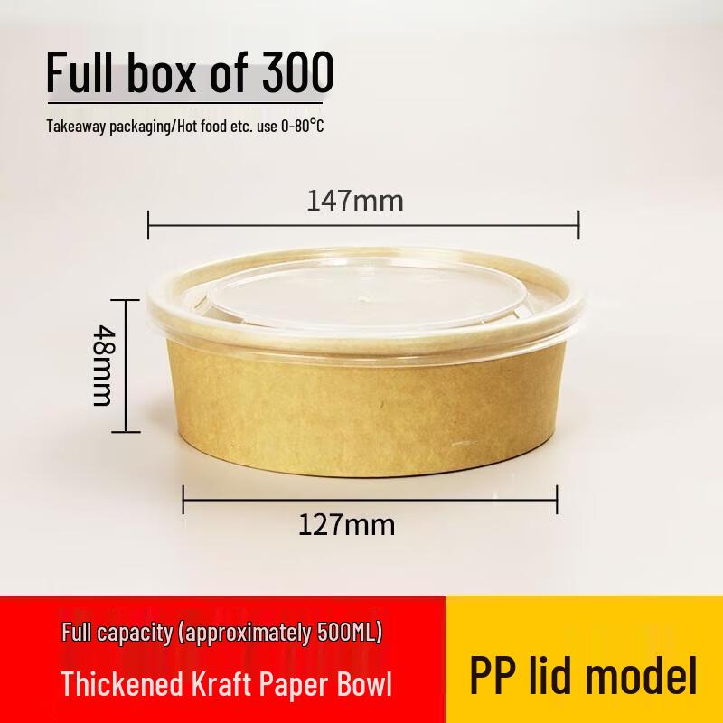 JINGRX Kraft Paper Disposable Round Bowls with PP Lids — tüm dünyaya ücretsiz teslimat ile online ürün satın alın!