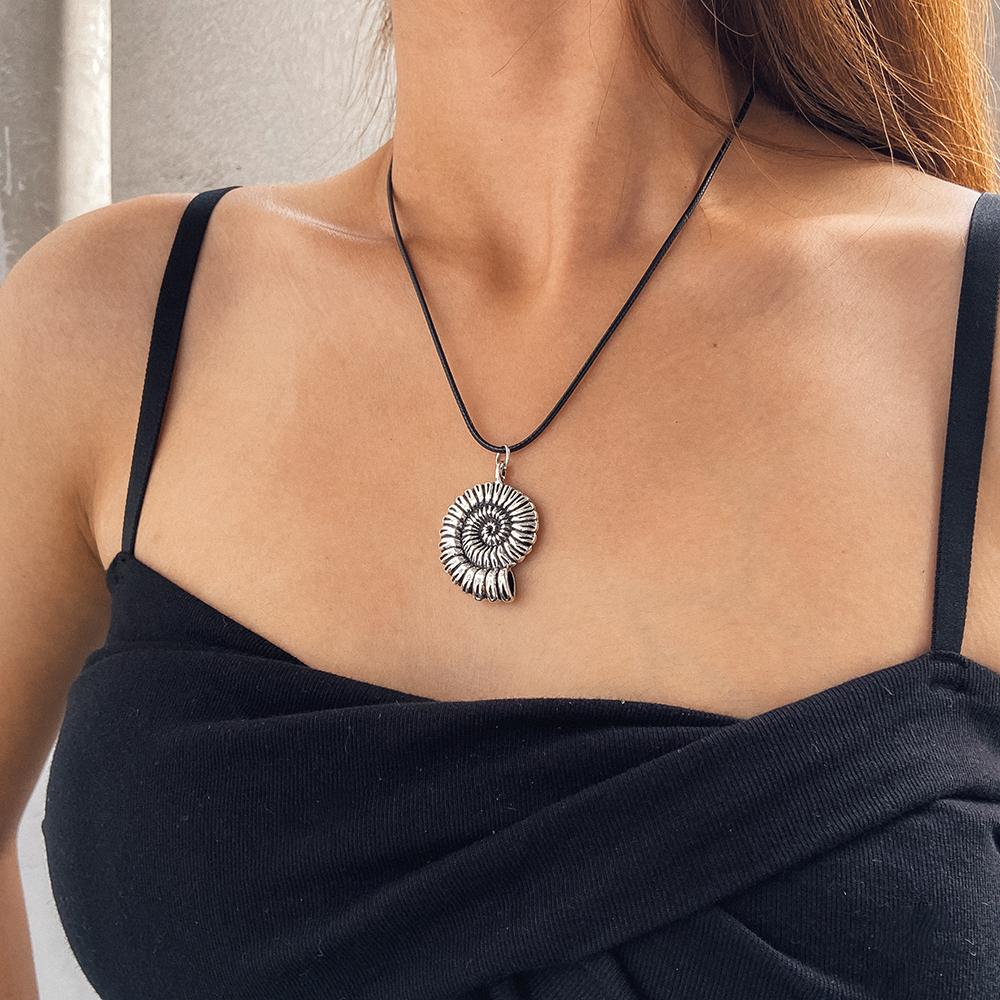 Goth Black Leather Wax Thread Chain With Tiny Conch Pendant Necklace For Women Simple Shell Snail Choker Y2K Vacation Jewelry — tüm dünyaya ücretsiz teslimat ile online ürün satın alın!