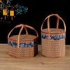 Handheld Elliptical Bamboo Basket Pastoral Style Sundries Snacks Basket Outdoor