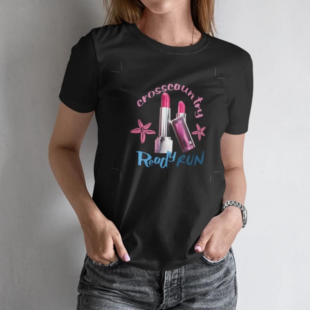 Chic Women's Short - Sleeve T Shirt“Crosscountry Ready Run” Lipstick themed Print for Active Summer Days