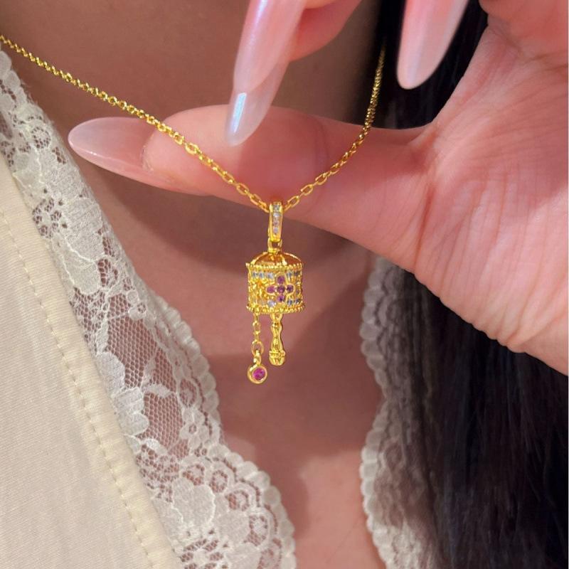 Small Sweet Potato To Gold Tube Four-Leaf Flower Clavicle Chain Full Of Diamonds High-End Niche Design Sense Can Be Rotated Necklace