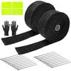 Exhaust Heat Wrap Roll 2" X 16' Black Fiberglass Heat Shield Tape 1 Rolls 5Cm X 5M With 10Pcs Stainless Ties For Motorcycle Car Truck