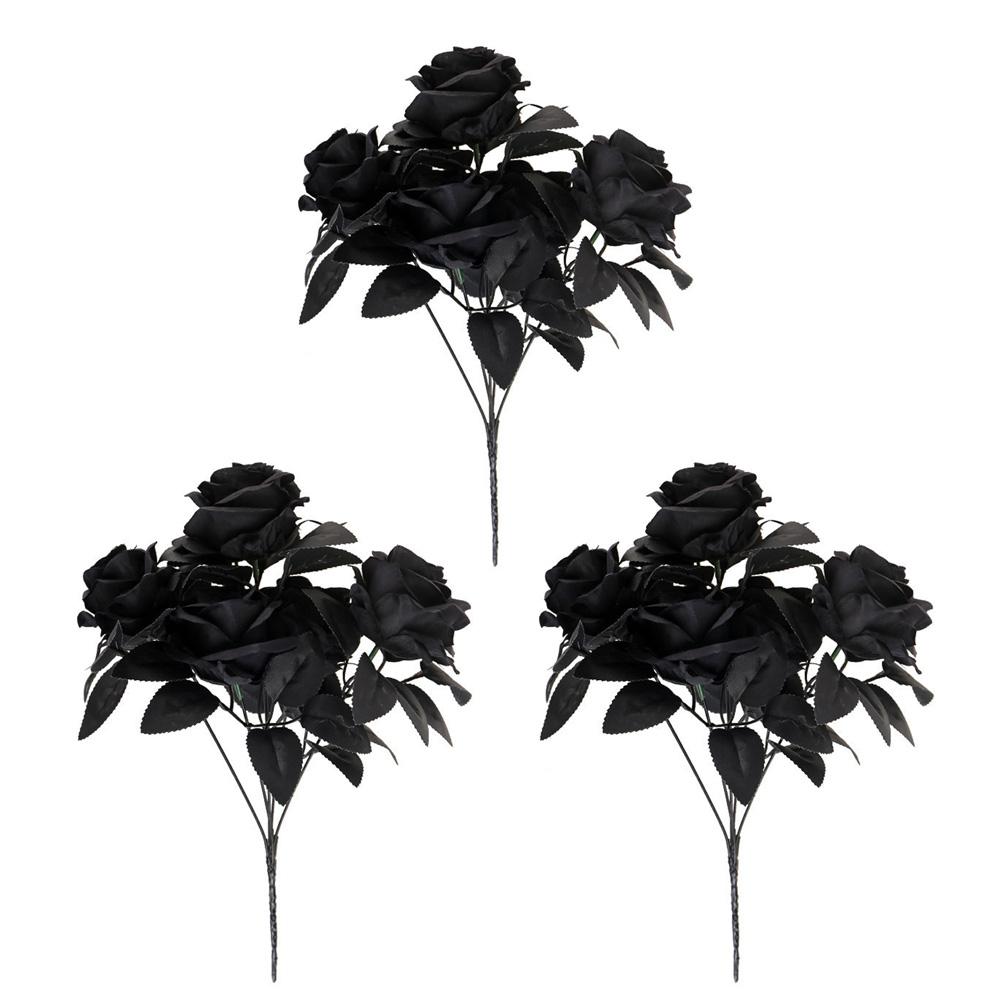 3pcs Black Rose Bouquet For Halloween Decor Set Spooky Mood Artificial Flowers Black Rose Halloween Decor Haunted Houses — tüm dünyaya ücretsiz teslimat ile online ürün satın alın!