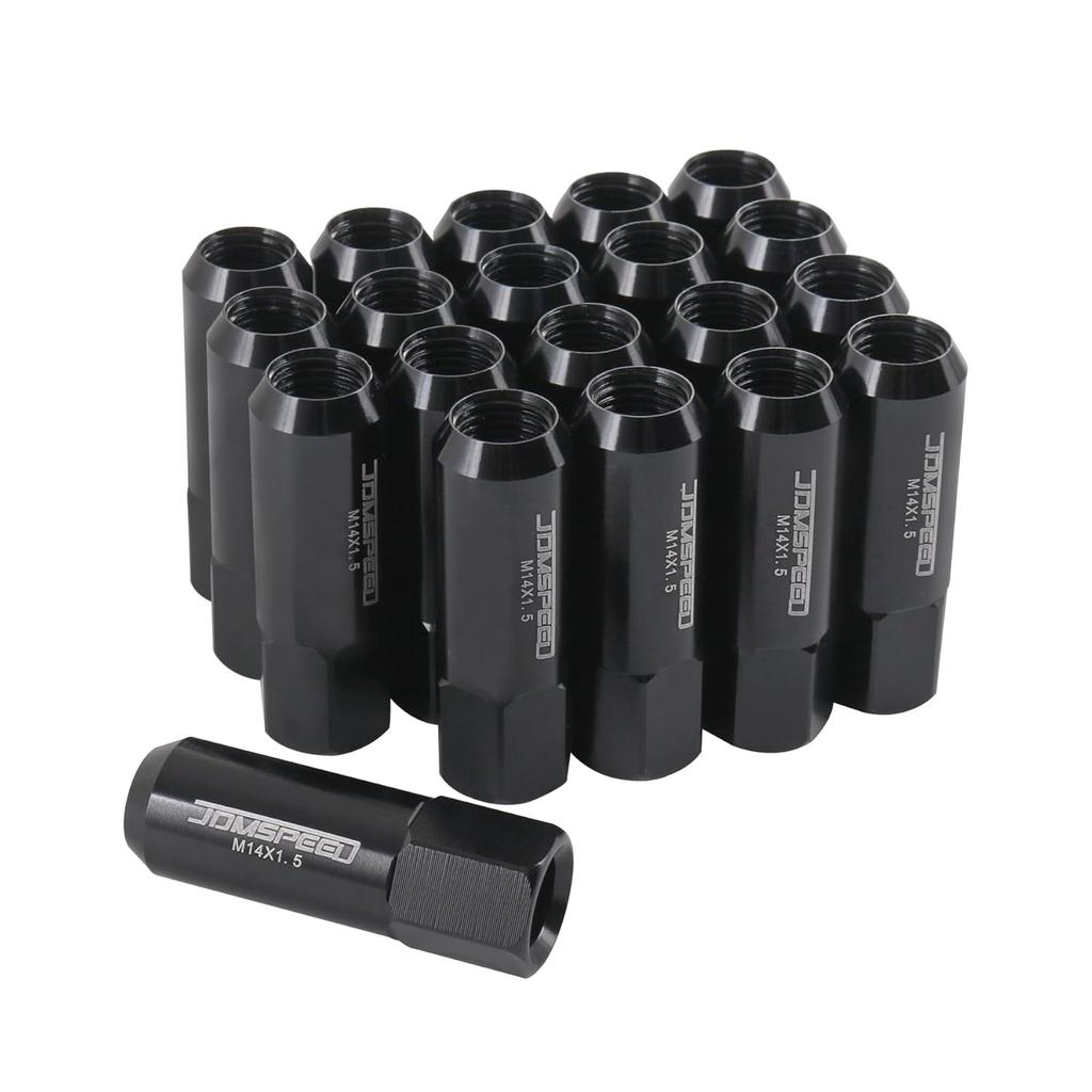 Extended Forged Aluminum Tuner Racing Lug Nut 20PCS - M14X1.5 Thread, 60MM Length, Black