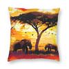 African Sunset Scene And Elephants Square Pillowcase Pillow Cover Cushion Throw Pillow for Home Sofa Living Room