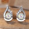 White Fire Opal Round Stone Stud Earrings For Women Vintage Black Rose Gold Silver Color Angel Wings Earring Engagement Jewelry