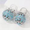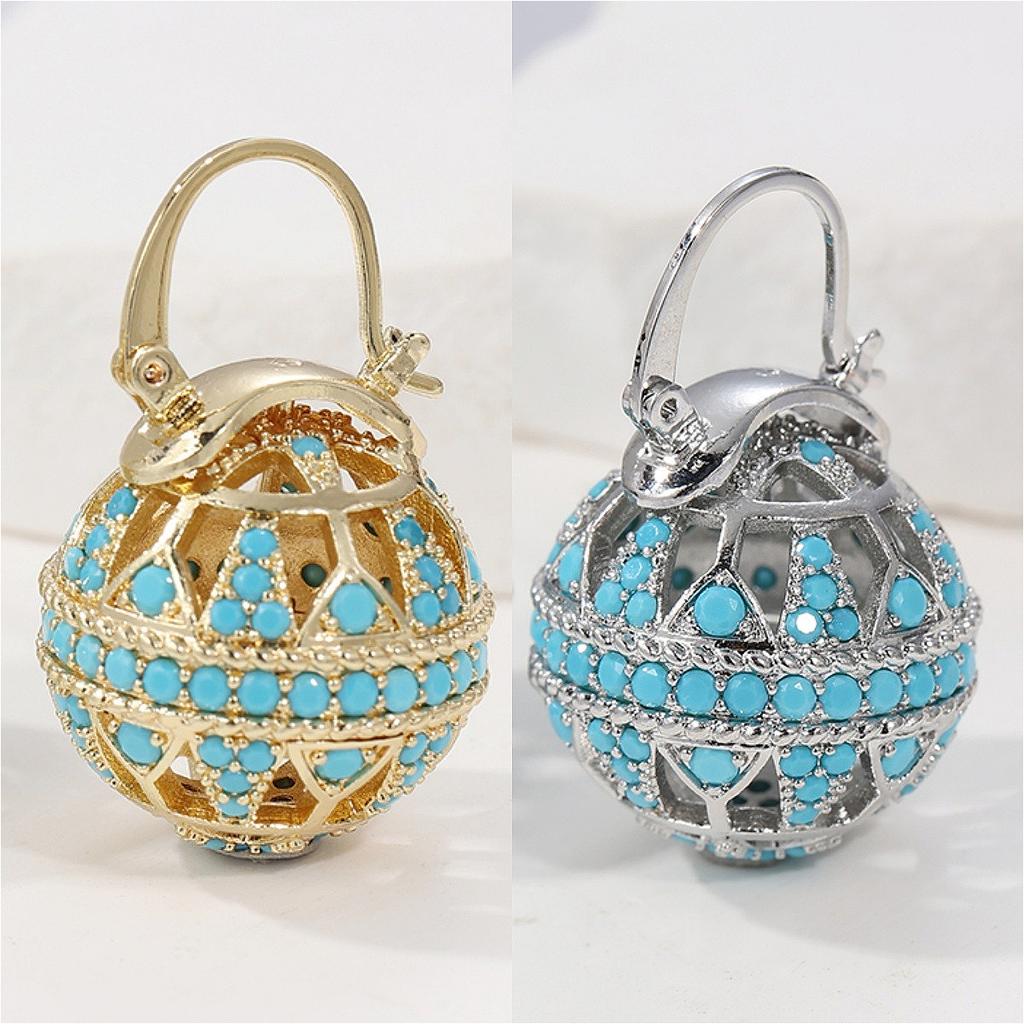 Exquisite Hand Carved Inlaid Synthetic Turquoise Hollowed Ball Dangle Earrings for Women Banquet Festival Jewelry Gifts