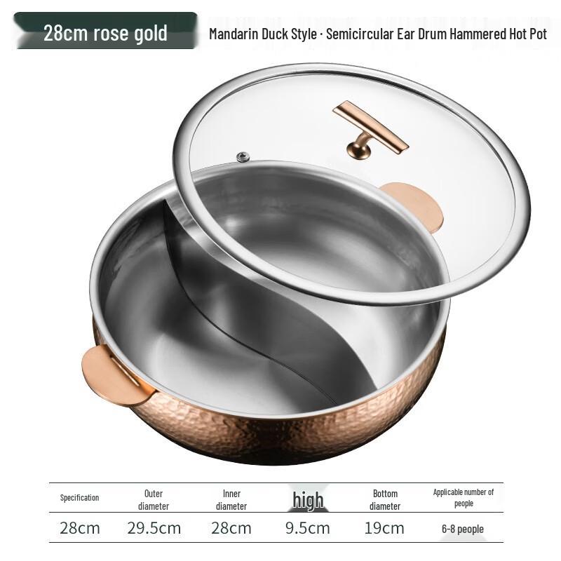 ZMR 28cm Rose Gold Hammered Divided Hotpot with Lid — tüm dünyaya ücretsiz teslimat ile online ürün satın alın!