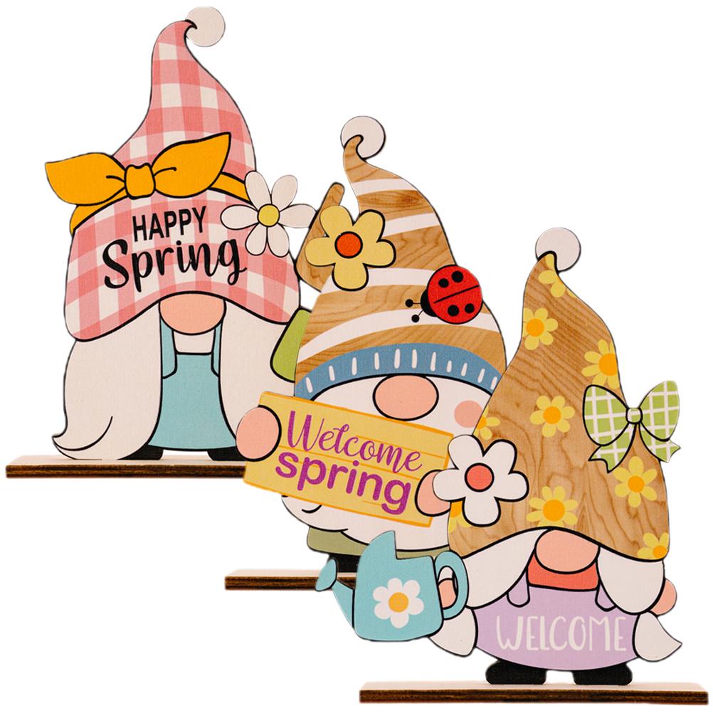 3pcs Adorable Gnome Ornament Wooden Easter Party Decor Creative Printed Dwarf Ornament
