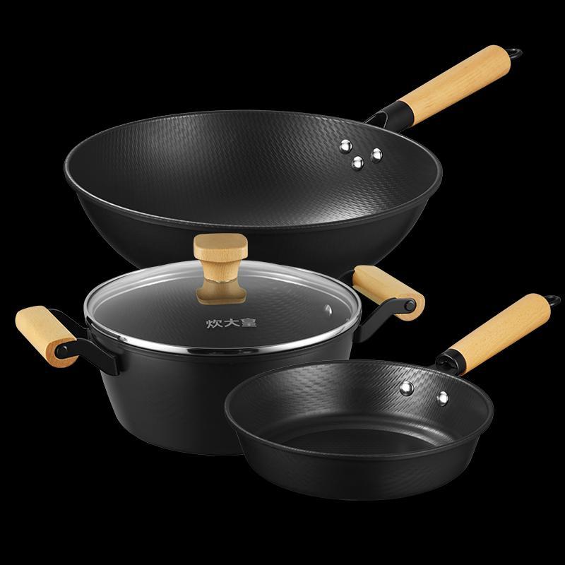 Chu Da Huang Shang Hua 3-Piece Non-Stick Wok Set