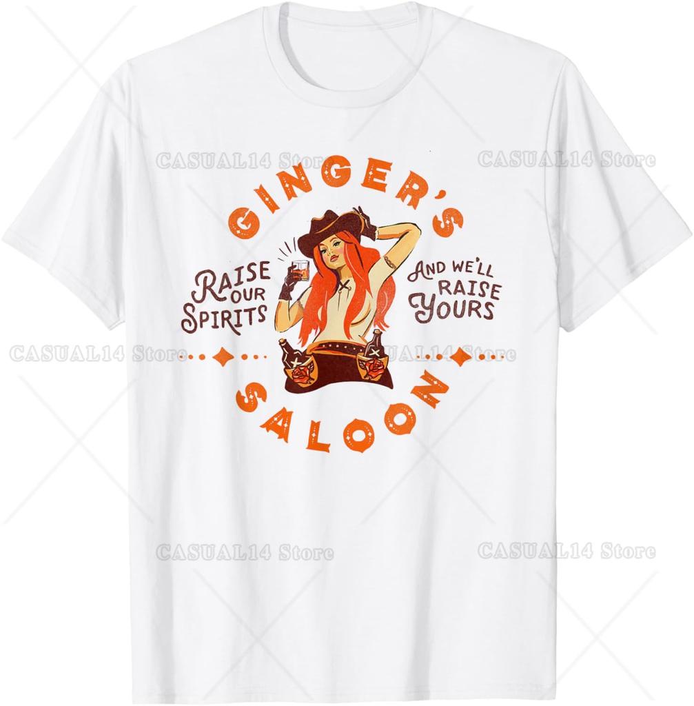 Gingers Saloon Vintage Cowgirl Whiskey Redhead Dive Bar Artist Gift T-Shirt Cotton Short Sleeve — tüm dünyaya ücretsiz teslimat ile online ürün satın alın!
