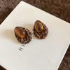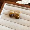 18k real gold electroplated tiger's eye stone geometric stud earrings Maillard temperament earrings earrings women