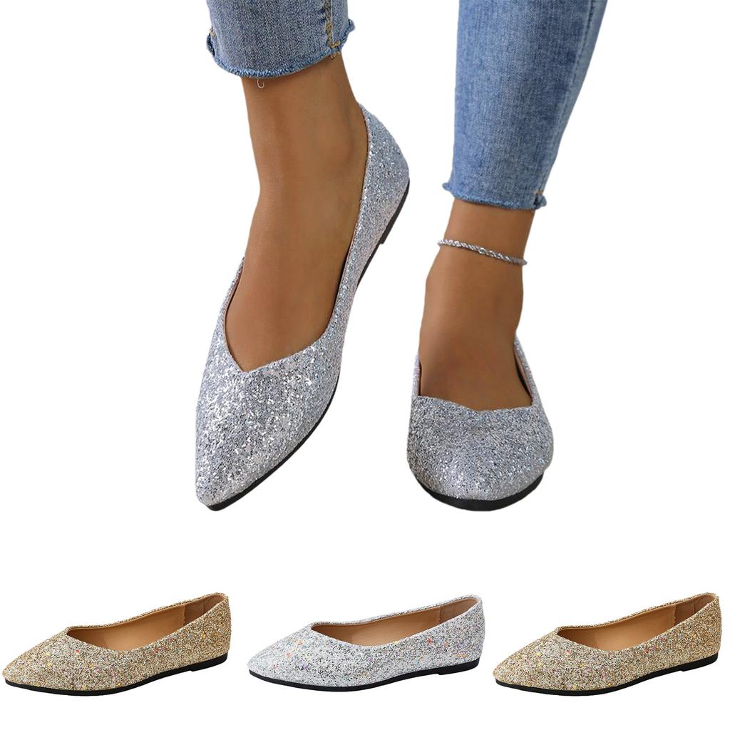 Women's Glitter Ballerina Flat Shoes With Sequins For Parties, Weddings, Everyday Wear