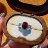 Classic silver Diamond inlay Southern Red Tourmaline Female Ring Ruby Glossy Exquisite Oval rings for women Wedding