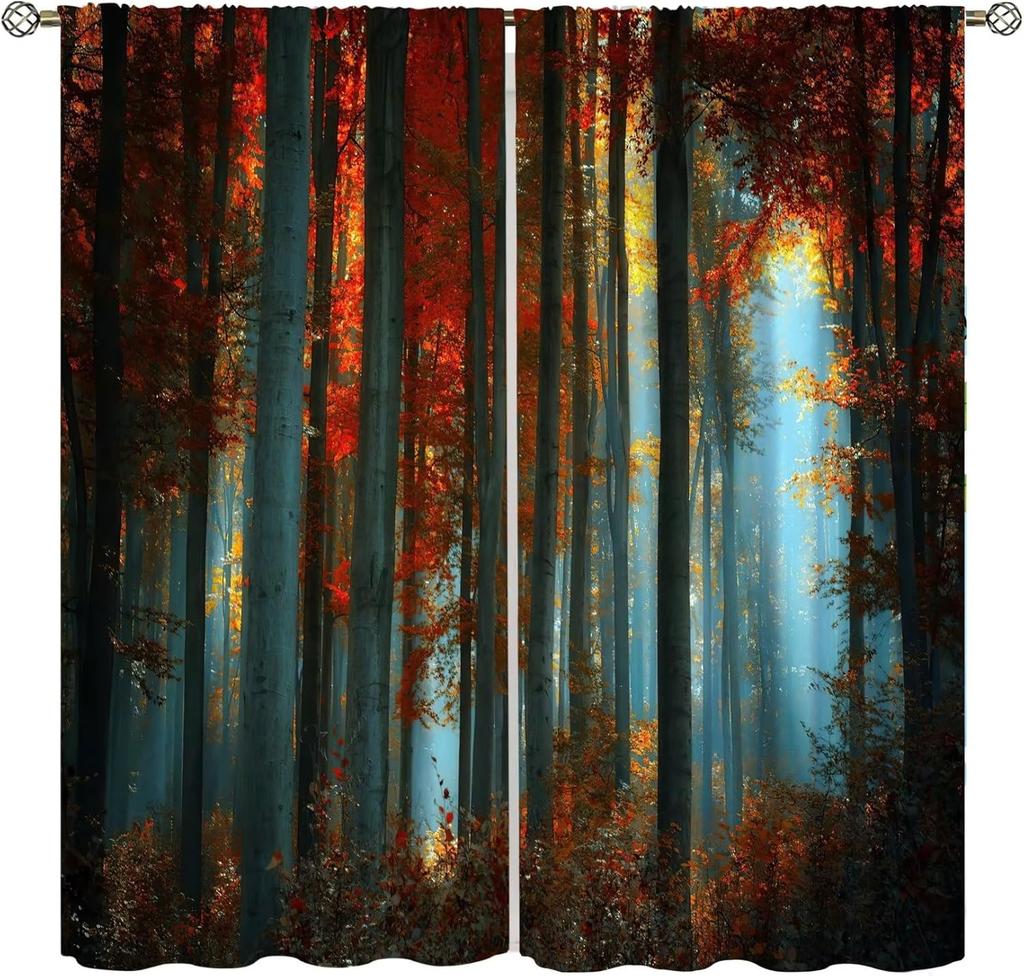 Red Blue Forest Curtains Burgundy Tree Mystic Foggy Woodland Scene Gothic Jungle Leaf Botanical Nature Art Printed Living Room B — tüm dünyaya ücretsiz teslimat ile online ürün satın alın!
