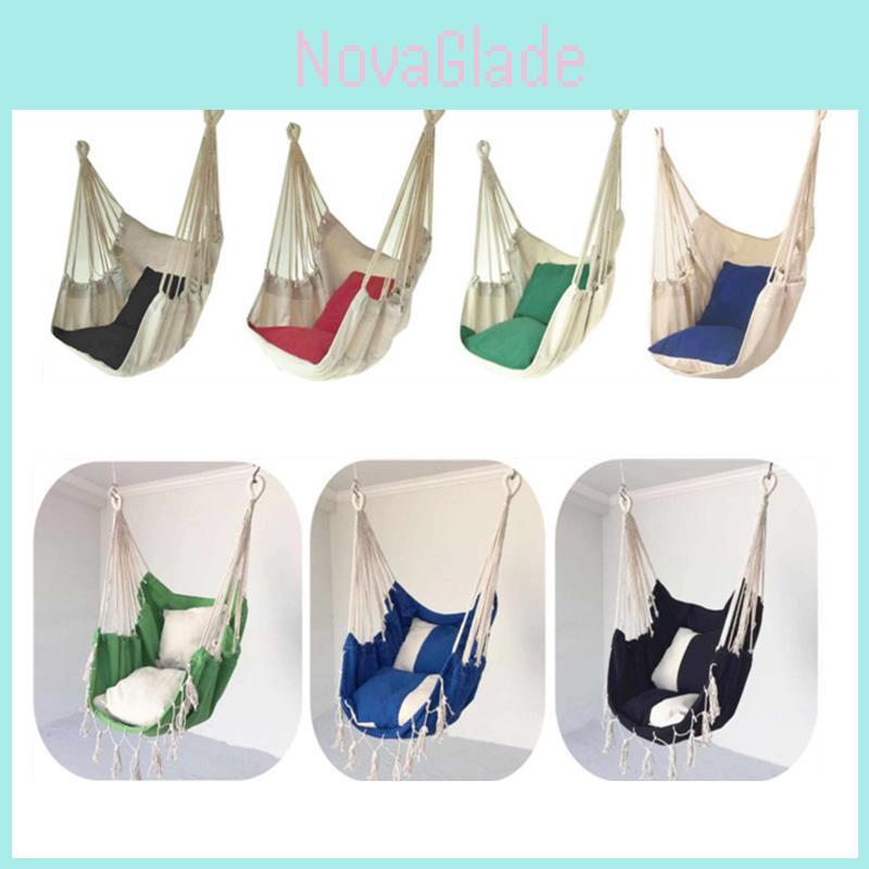 Stylish Hanging Hammock Chair For Outdoor Relaxation With Soft Pillows And Strong Ropes