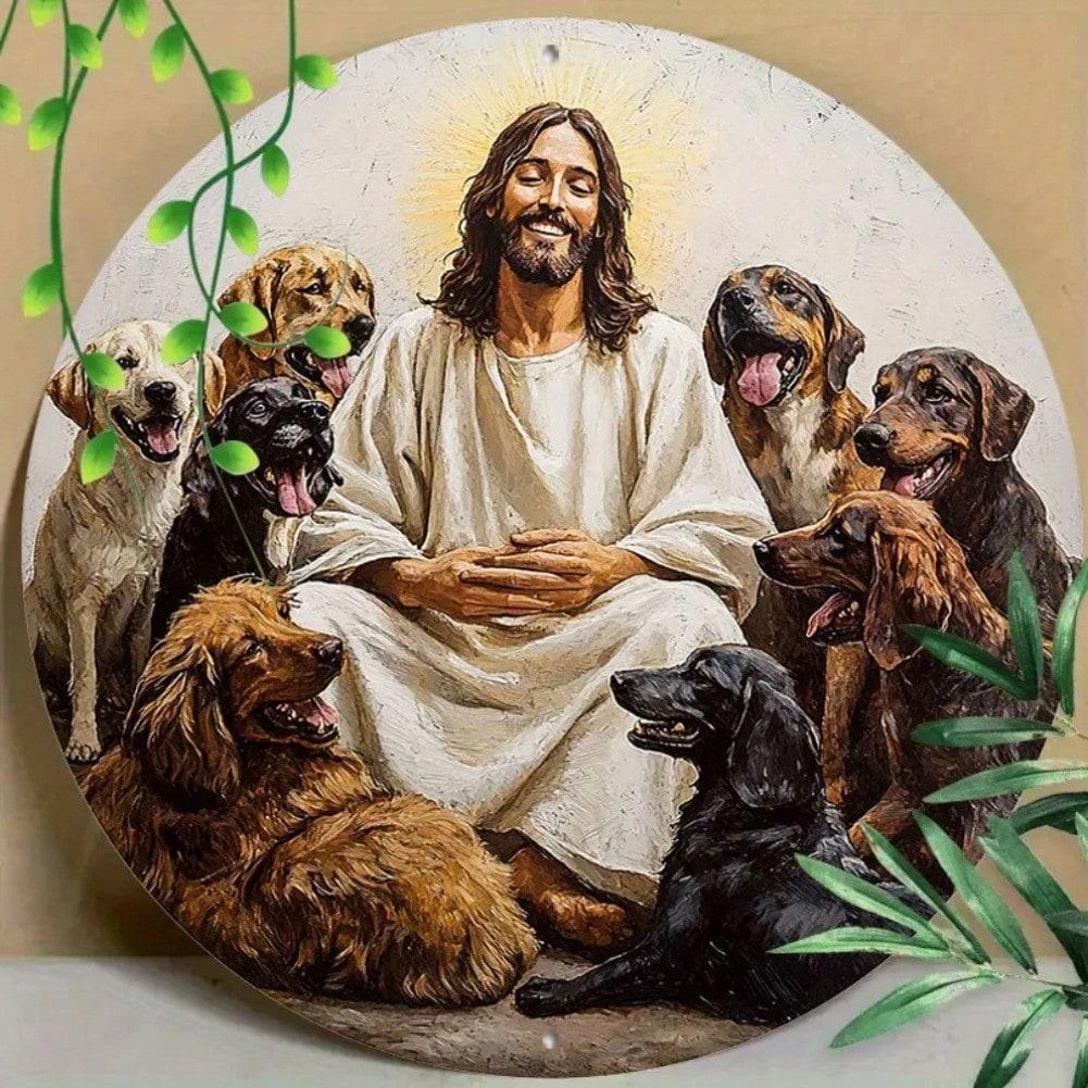 Religious Dog Figure Metal Wall Art UV Resistant Scratchproof Decor Gift