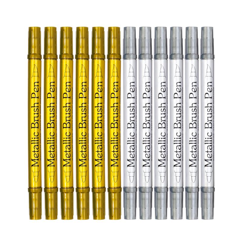 Double Head Color Metal Water Resistant Permanent Paint Marker Pens Gold Silver Color for DIY Art Marker Pen Art Painting Supplies — tüm dünyaya ücretsiz teslimat ile online ürün satın alın!