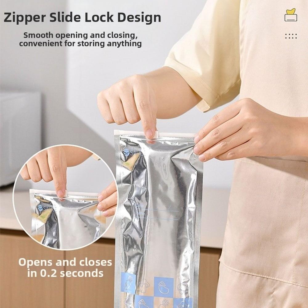 Aluminum Foil Food Sealing Bags Reusable Leakproof Kitchen Fresh Bag Zip Lock Long Strip Fruits Vegetables Fresh-keep Bags