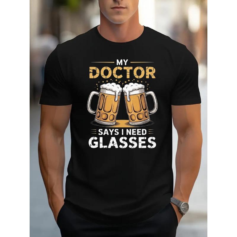 European sizes Men's T-Shirt Black My Doctor Says I Need Glasses Beer Mugs Graphic Tee for Casual Wear — tüm dünyaya ücretsiz teslimat ile online ürün satın alın!