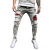 Fashion Men Solid Color Patchwork Skinny Fit Ripped Jeans Stretch Denim Pants — tüm dünyaya ücretsiz teslimat ile online ürün satın alın!