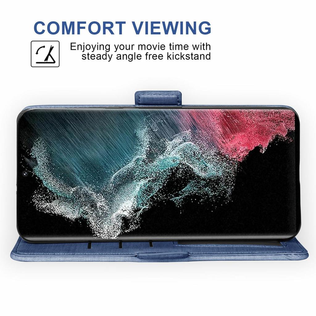 For Samsung Galaxy S26 Ultra Case Jean Cloth Texture PU Leather Wallet Phone Cover with Rotating Card Slots