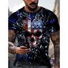 Summer Men's Retro Flag Printed T-shirt 3D Skull Round Neck Short Sleeve Casual Breathable Men's Large Size T Shirt Hot Model — tüm dünyaya ücretsiz teslimat ile online ürün satın alın!