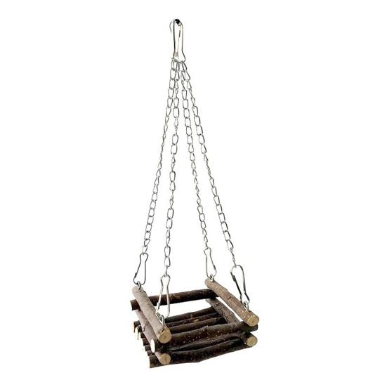 Bu hamster salıncağı doğal ahaptan yapılmıştır, evcil hayvanınızın kemirme ve dişlerini törpüleme içgüdüsünü tatmin eden güvenli, kokusuz bir ortam sağlar.. Sağlam metal zincirler ve kancalarla donatılmış olup, paslanmadan veya zamanla deforme olmadan çoğu kafese uyan stabil yük taşıma kapasitesi ve kolay kurulum sağlar..