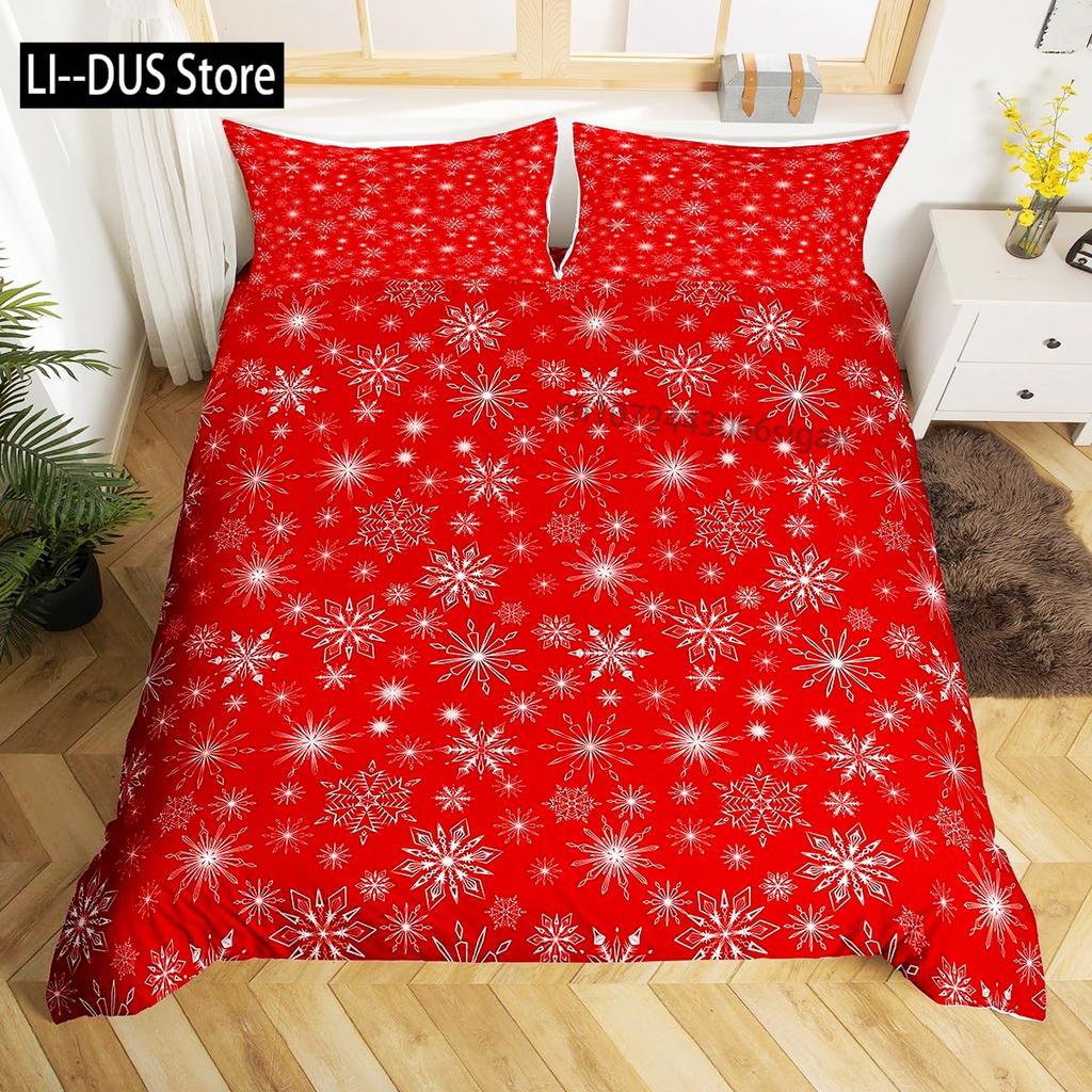 Winter Duvet Cover Set Various Different Snowflakes Decor 3 Piece Bedding Set with 2 Pillow Shams Full King Queen Twin Size
