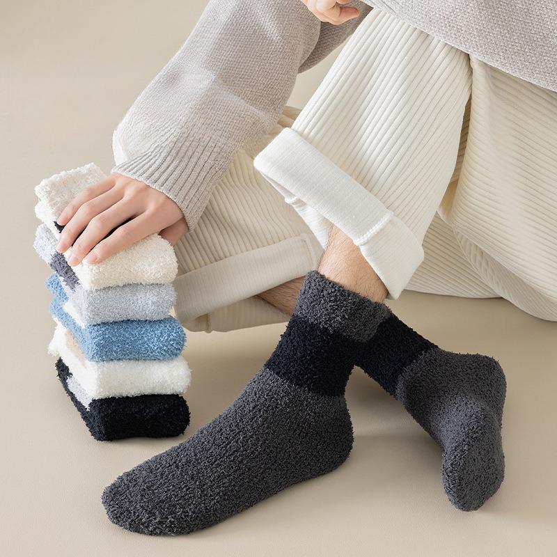 Coral Wool Socks - Men's Thick and Warm Mid-calf Socks That Don't Shed Fibers. Sleep Socks Pure Color. Floor Socks. — tüm dünyaya ücretsiz teslimat ile online ürün satın alın!