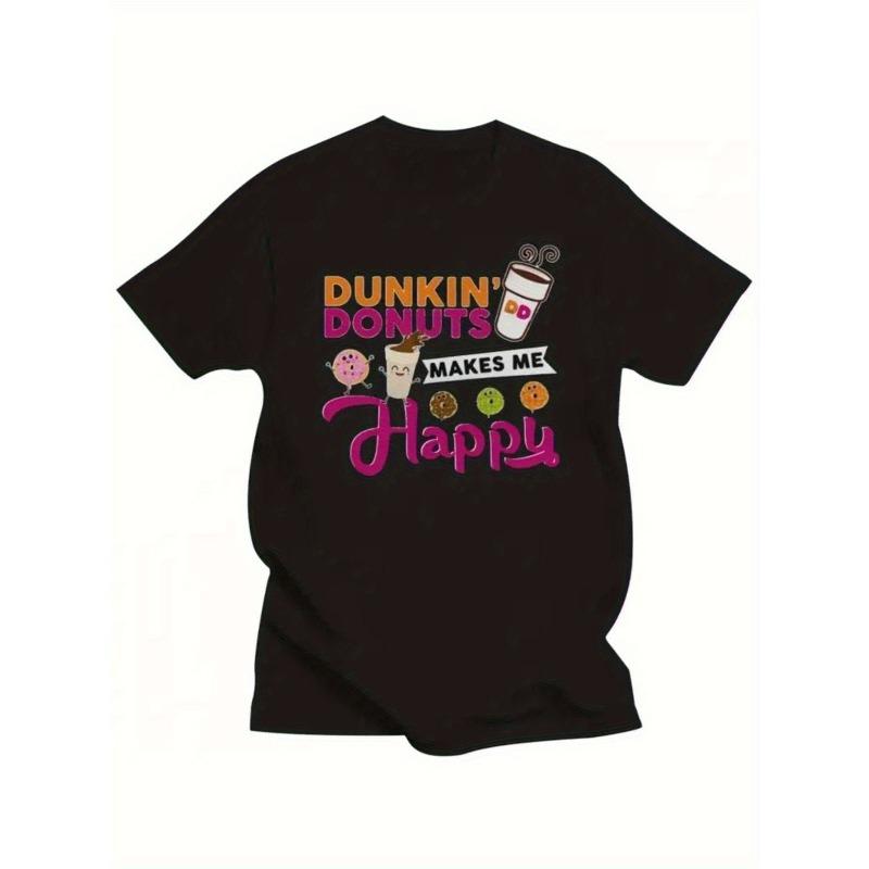 European sizes Dunkin' Donuts 'Happy' Graphic T-Shirt , Men'S Casual Round Neck Tee Featuring a Fun Donut And Coffee Cup Design