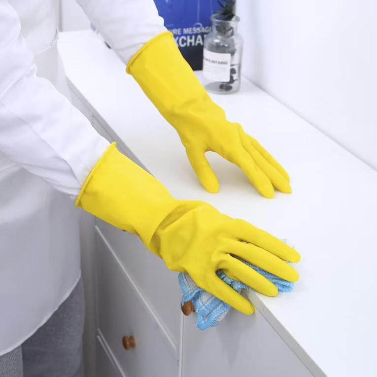 Women's Yellow Waterproof Dishwashing Gloves - Durable Latex for Winter Home Cleaning