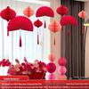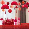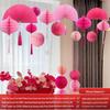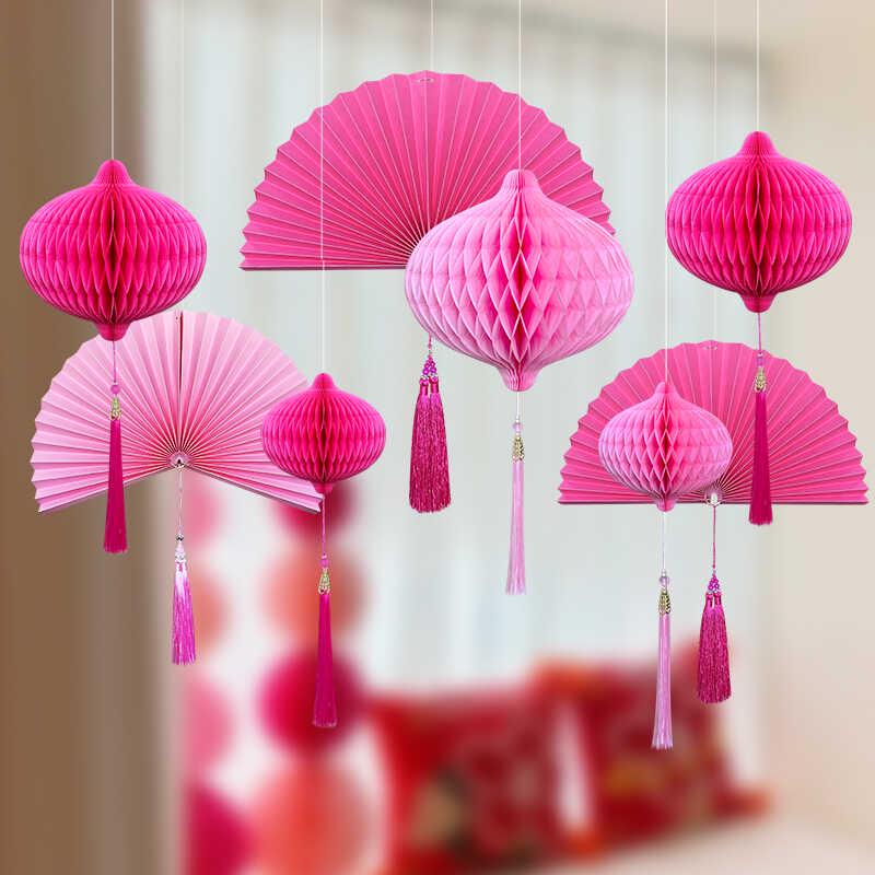 Wedding Décor Set: Honeycomb Balls, Folding Fans & Double Happiness Pendants for Groom's Room