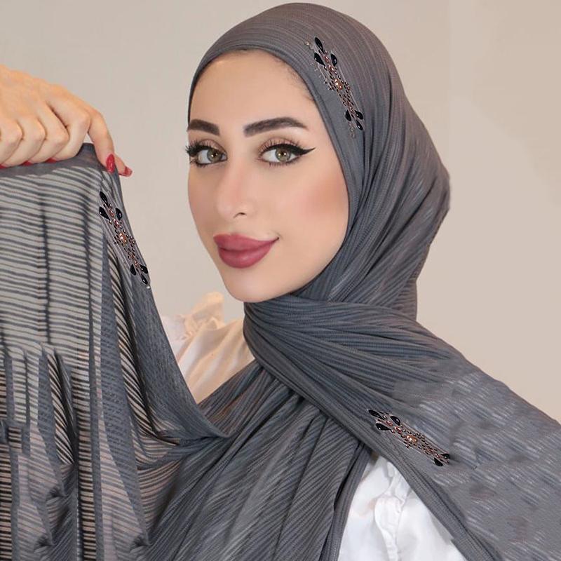 Fashion Ribbed Jersey Hijab Muslim Plain Scarf Crepe Rhinestone Hijab Soft Islamic Shawls Wraps Headband For Women — tüm dünyaya ücretsiz teslimat ile online ürün satın alın!