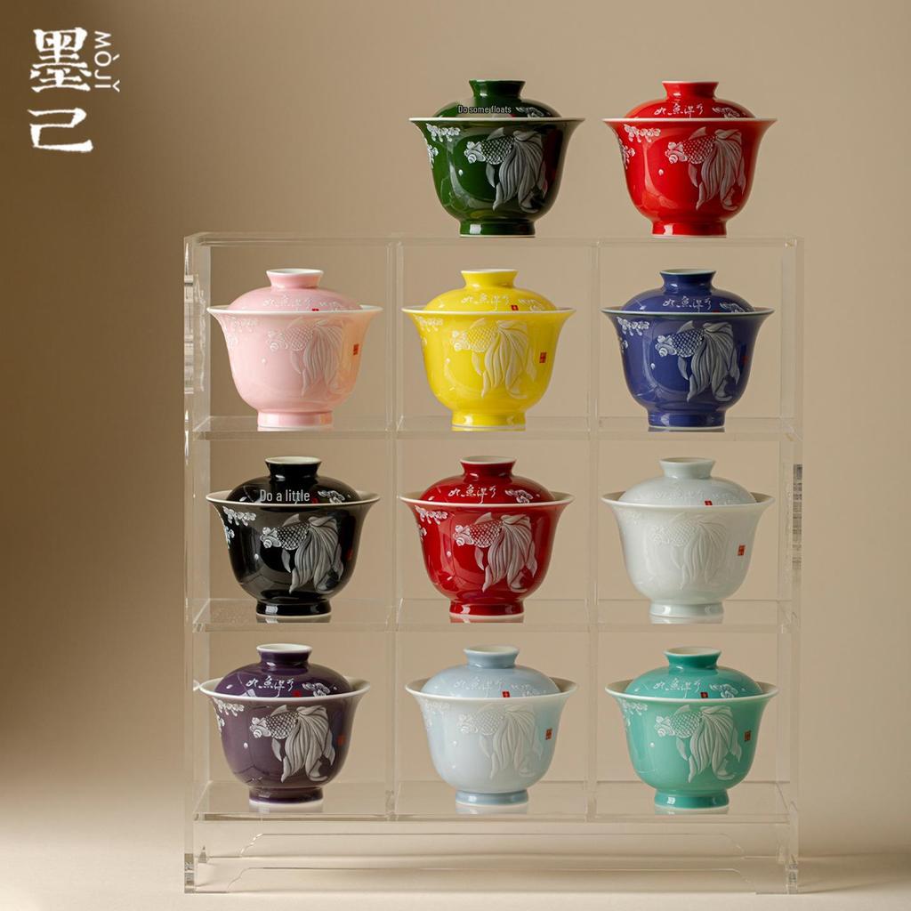Dehua Ore Color Glaze White Fish Ceramic Gaiwan Tea Set - Thin Porcelain Kung Fu Tea Brewing Bowl