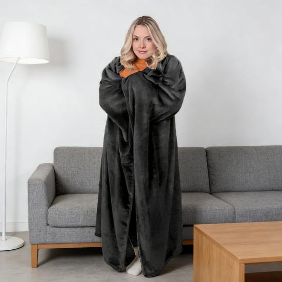 Flannel Wearable Blanket Poncho Soft Blanket Cape with Arm Pockets Warm Cozy Blanket Wrap for Adults Home Office Travel Comfort — tüm dünyaya ücretsiz teslimat ile online ürün satın alın!