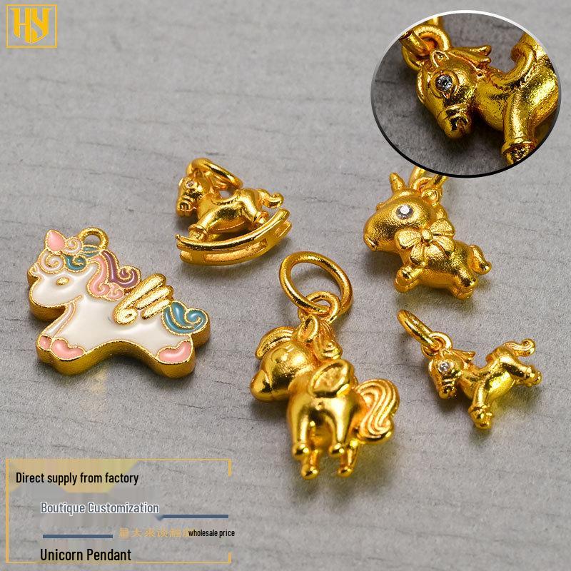 24K Gold-Plated Pure Copper Year of the Horse Unicorn Pendant Charm for DIY Jewelry