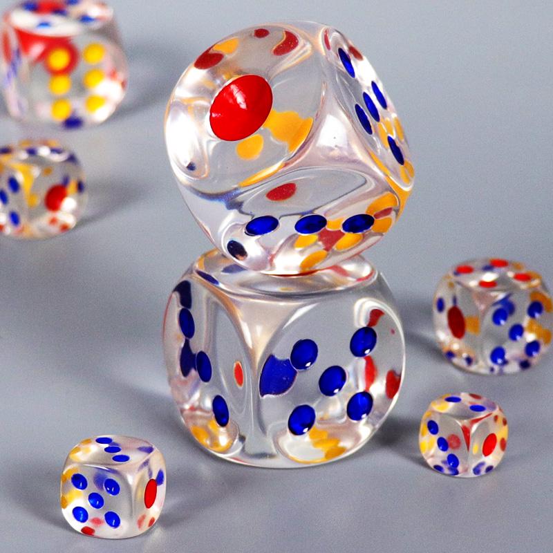 30mm Large Transparent Crystal Dice with Colored Pips for KTV, Bar, or Mahjong