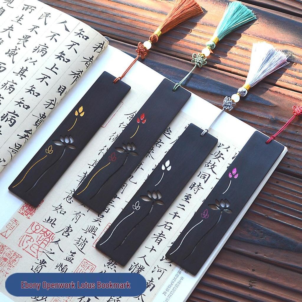 Ancient Sandalwood Lotus Bookmark: Gold-Painted Silver Openwork Creative Souvenir for Graduation and Back-to-School Gifts