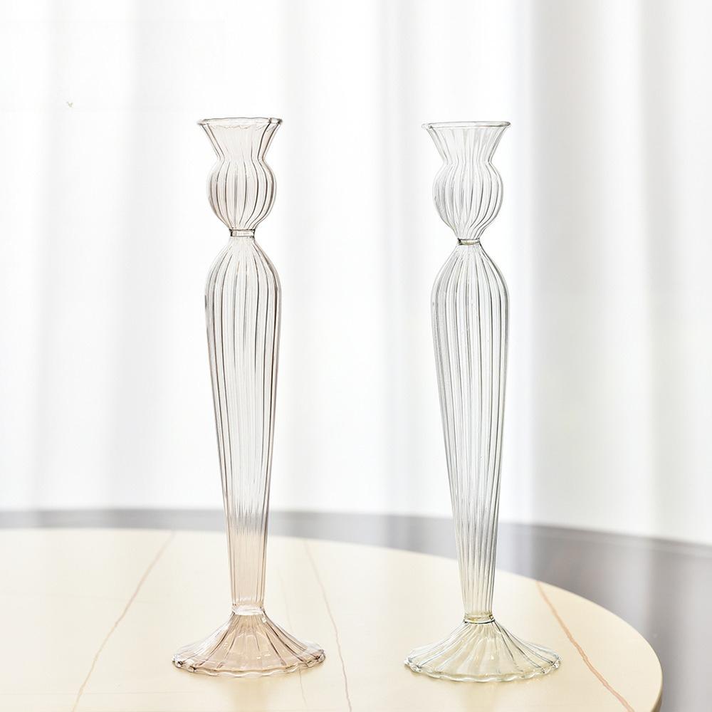 Creative Stripe French Glass Candlestick Candlelight Dinner Candle Stand Desktop Decoration Wedding Party Home Office Decor