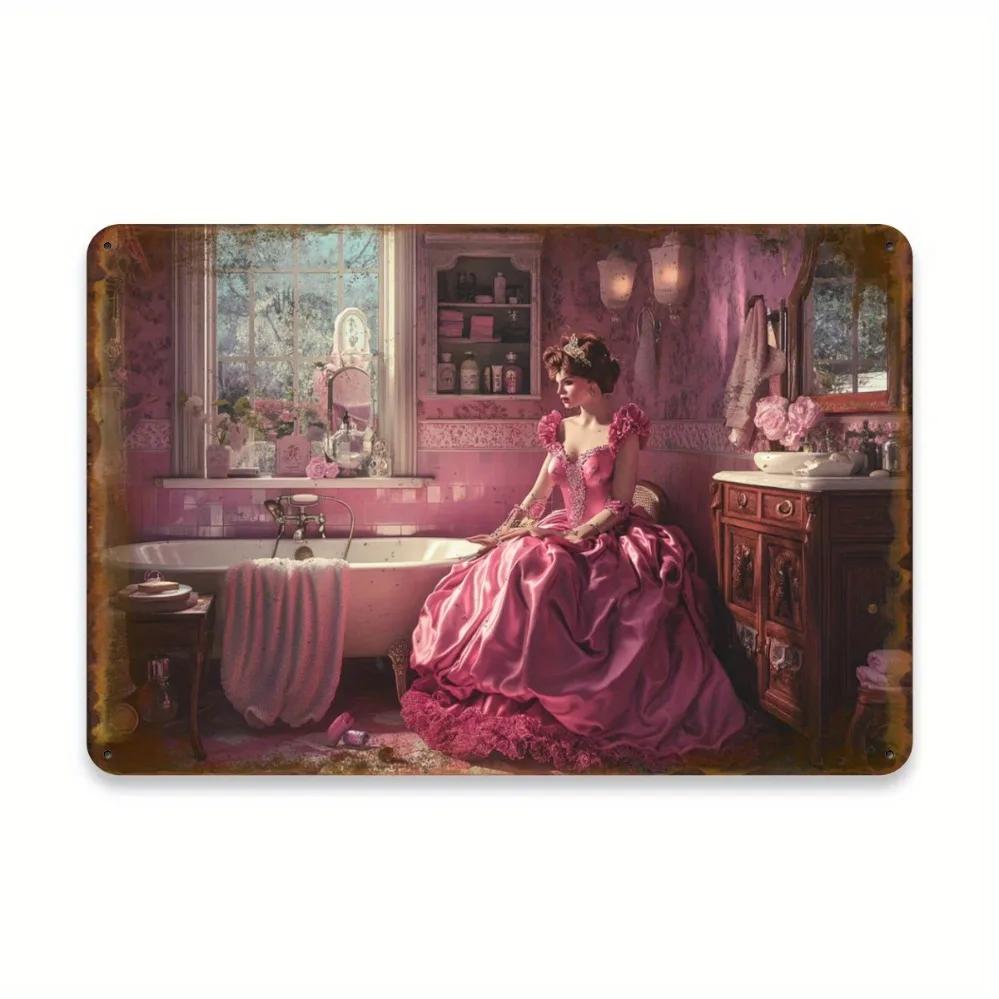 Vintage Victorian Style Pink Dress with Rose Accents – Aesthetic Room Decor for Home, Bathroom, and Café | Wall Art Depicting — tüm dünyaya ücretsiz teslimat ile online ürün satın alın!