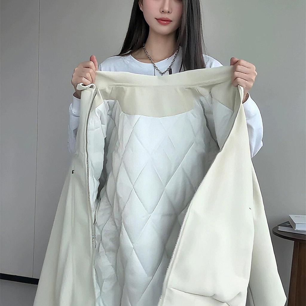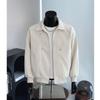 Off-White PU Leather Padded Men's Autumn Winter Motorcycle Jacket, Thickened Cotton Baseball Style for Couples
