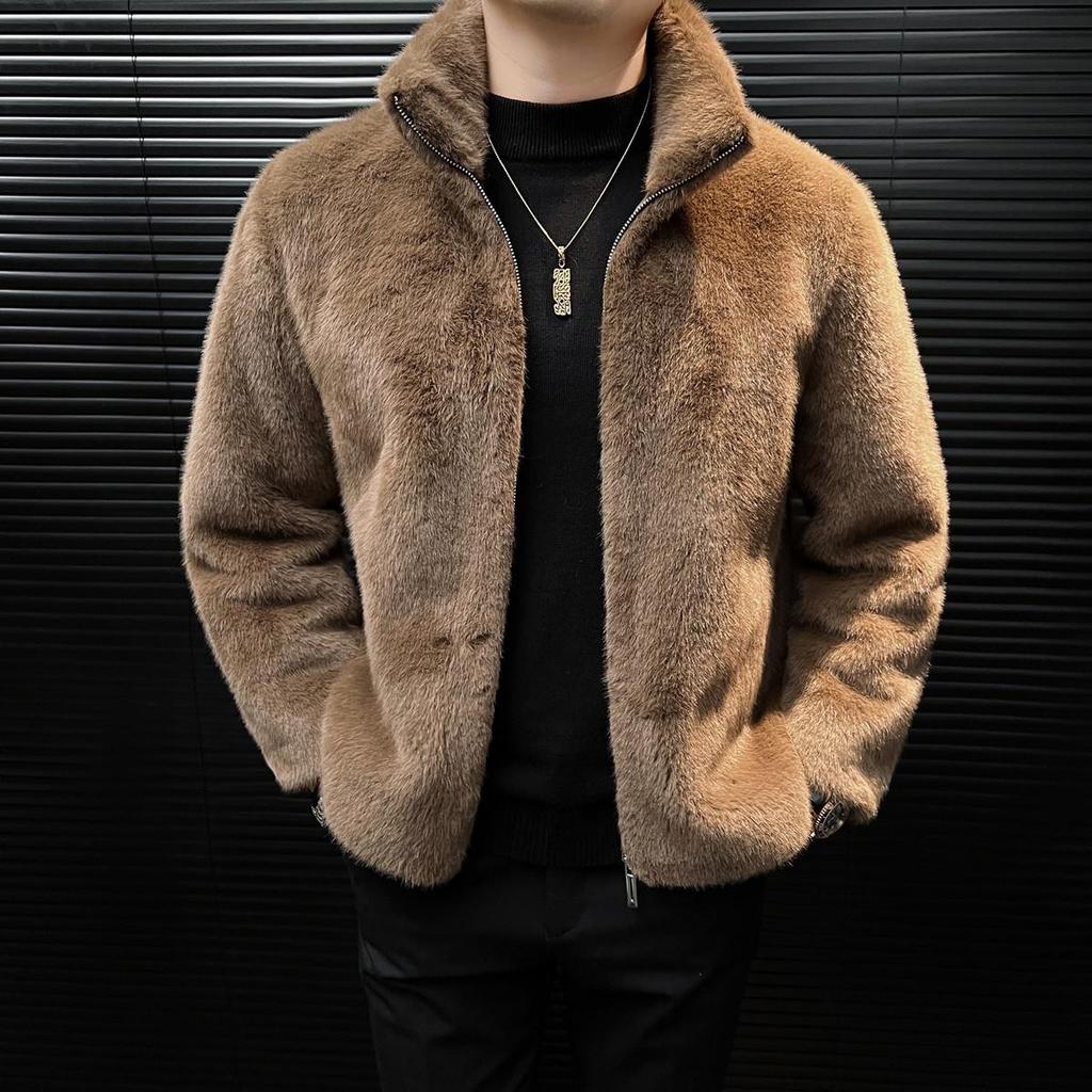 2025 Men's High-Quality Faux Mink Shearling Coat - Thickened Stand-Collar Winter Zip Top