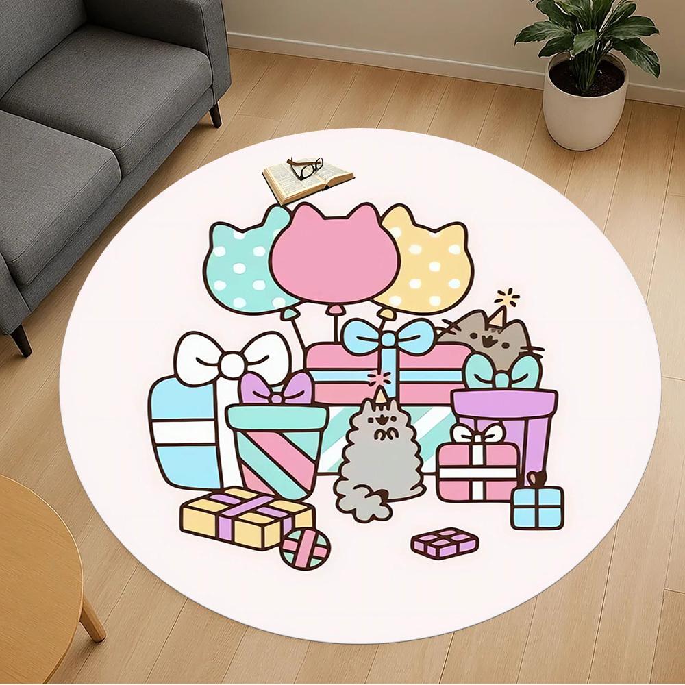 1pc Pusheen Party Round Chair mat Area Rug - Non-Slip, Floor Mat for Office, Bedroom, home decor Christmas Gift p0811238