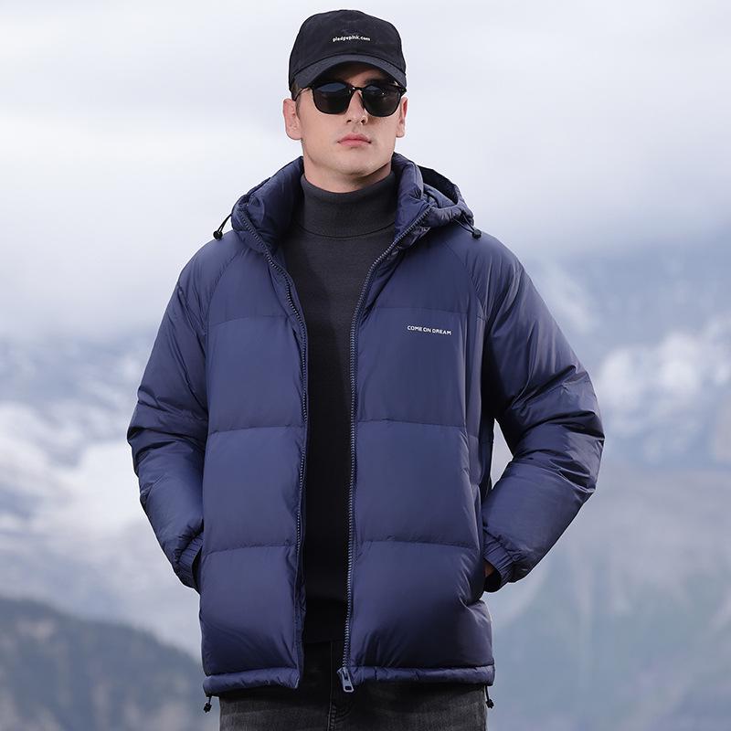Stay warm and stylish with this winter's must-have men's hooded puffer coat. Designed with a high loft, it provides maximum insulation with its duck down filling, ensuring exceptional warmth during the coldest months. The coat's loose fit and stand neckline offer both comfort and contemporary style. Made from durable nylon, it features a sleek, solid pattern that complements any winter wardrobe. The hooded design adds extra protection against the elements, making it an ideal choice for any fashion-forward male looking to brave the winter season.